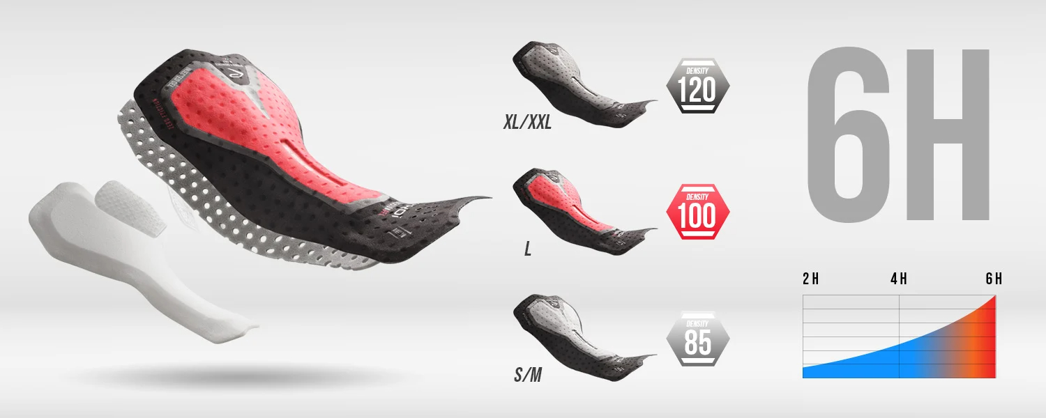 - Tùy chỉnh theo trọng lượng: Miếng đệm được thiết kế với 3 kích thước và 3 mật độ gel khác nhau, phù hợp với mọi vóc dáng và trọng lượng người lái, đảm bảo sự thoải mái tối ưu.